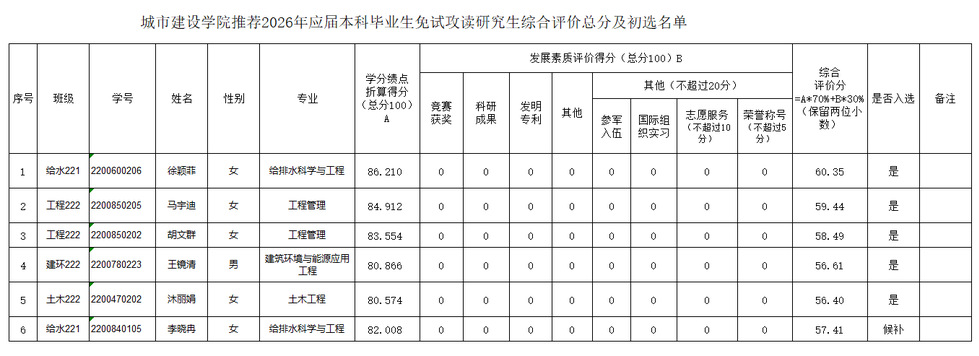 【公示】麻豆做爱 推荐2026届本科毕业生免试攻读硕士研究生初选名单公示