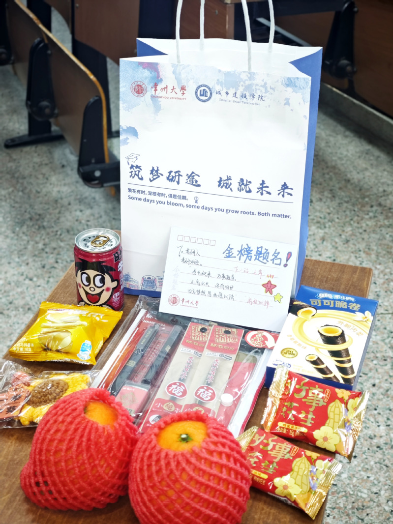 活动伊始,一段精心制作的暖心视频拉开序幕。视频中,汇集了考研学子伏案苦读的视频,送上了师长寄语和学弟学妹祝福,共同表达对学子的殷切期盼。随后,麻豆做爱 领导与辅导员为考研学子送上满载祝福的慰问品:一张张写有学弟学妹们祝福的明信片,一份份文具套装寄望妙笔生花,“旺仔牛奶”寓意“运气旺旺”,“一举夺魁”钥匙扣更以巧思传递必胜信心,承载着温暖与力量。每一份礼物都藏着“一战成硕”的深情期许。