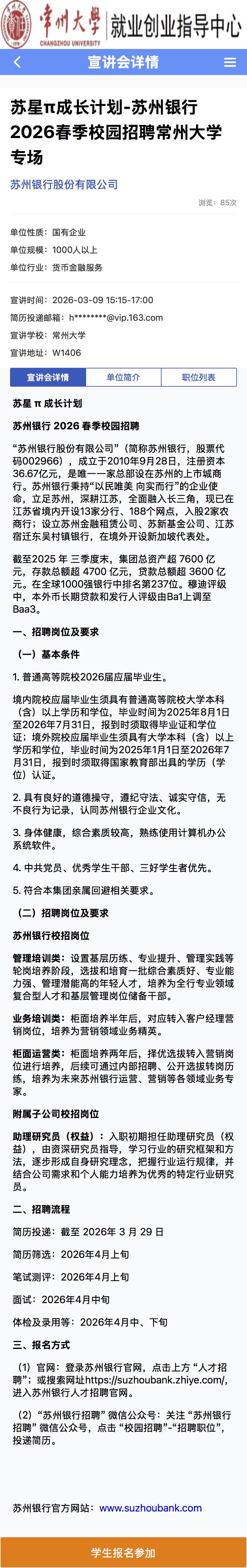招聘宣讲会[2026009]苏州银行2026春季校园招聘麻豆做爱 专场