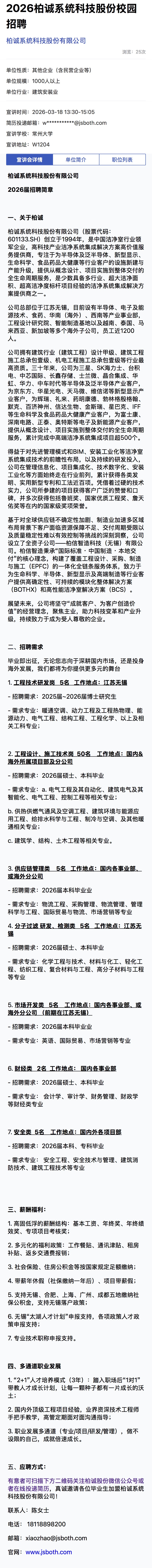 招聘宣讲会[2026020]2026柏诚系统科技股份校园招聘